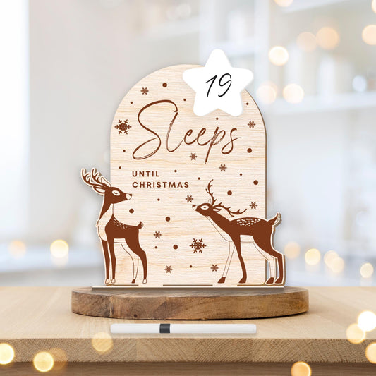 Sleep's Until Christmas - Reindeer: Countdown Sign with Acrylic Star & Dry-Erase Marker, Wooden Christmas Plaque, Christmas Countdown