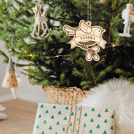 Personalised Robin Christmas Ornament - Custom Name, Rustic Xmas Home Decor, Wooden Memorial Robin Bauble, Hanging Christmas Tree Decoration