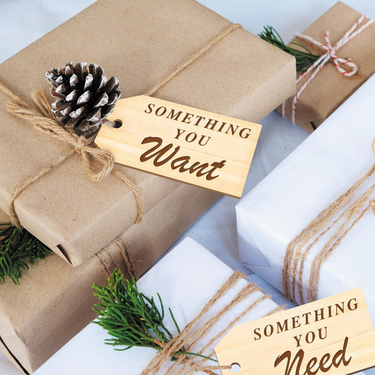 Something To/You Gift Tags - Want, Need, Wear, Do, Read - Pack of 5 Reusable Wooden Personalised Present Tags For Christmas or Birthdays