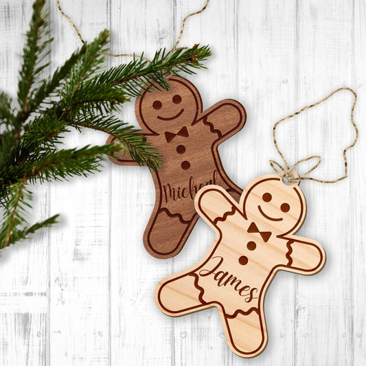 Personalised Ginger Bread Man - Wooden Ornament, Tree Decoration, Xmas Keepsake Memento, Cute Christmas Baubal, Wooden Christmas Bauble