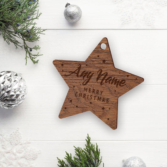 Star & Name Christmas Ornament - Rustic Personalised Wooden Star Bauble, Cosy Christmas Hanging Tree Decoration, Christmas Tree Home Decor