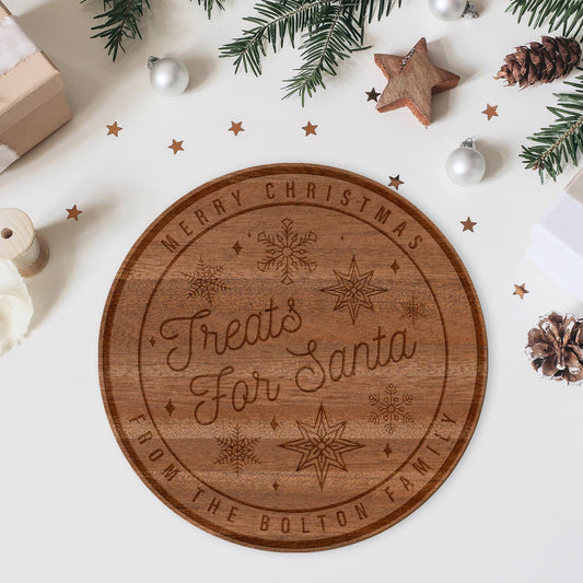 Treats for Santa - Snow Plate: Christmas Eve Santa Tray, Personalised Wooden Santa Claus Treat Board, Xmas Milk & Cookie Plate