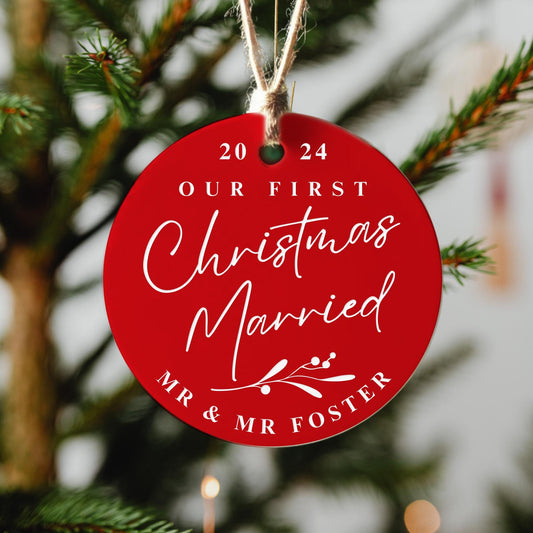 First Christmas Married - Mistletoe Tree Ornament: Personalised Christmas Bauble Newly Wed Couples, Xmas Keepsake Memento, Christmas Decor