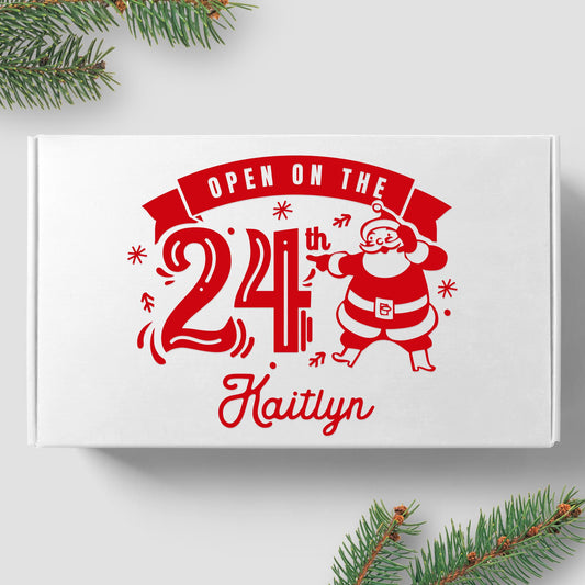 Xmas Eve Box - Open On The 24th: Personalised Christmas Eve Box Sticker, Custom Name Gift Box Decal, Christmas Eve Gift Idea, Gift Box Label