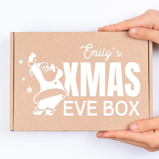 Xmas Eve Box - Fun Santa: Personalised Christmas Eve Box Sticker, Custom Name Gift Box Decal, Christmas Eve Gift Idea, Gift Box Label