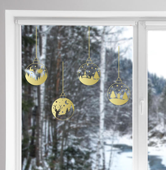 Christmas Baubles - Window or Wall Sticker, Winter/Christmas Themed Sticker, Cosy Xmas Sticker, Festive Shop Display Window Decal, Set Of 4