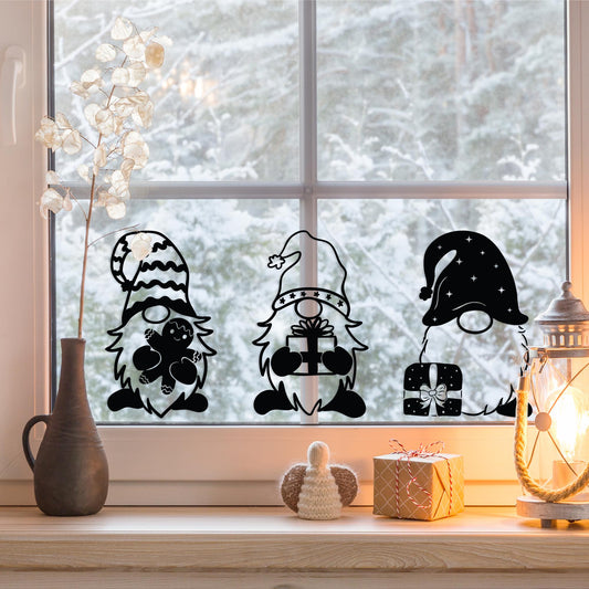 Christmas Gonks - Window or Wall Sticker, Winter/Christmas Themed Sticker, Cosy Xmas Sticker, Festive Shop Display Window Decal, Set Of 3