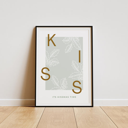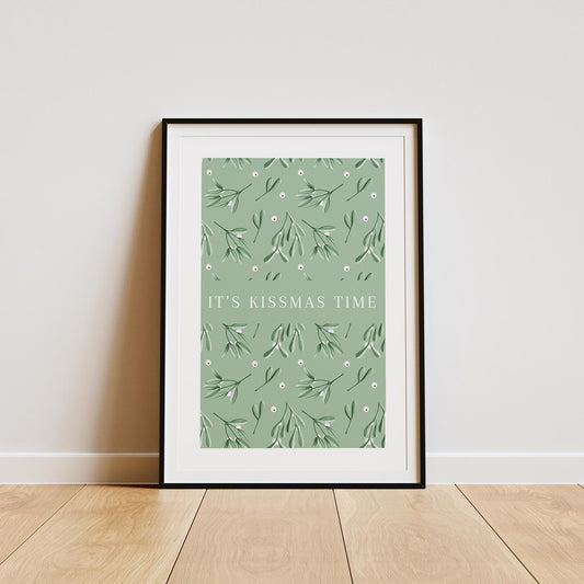 It's Kissmas Time - 02: Christmas Poster, Mistletoe Holiday Wall Art, Christmas Home Decor, Living Room Wall Art, Festive Home Prints