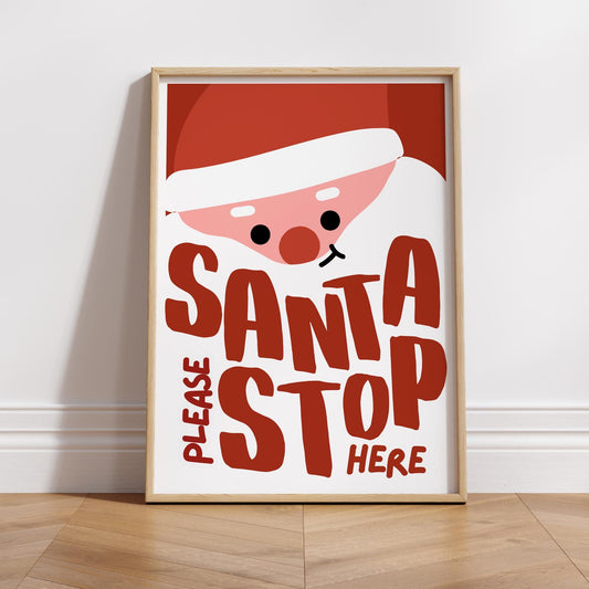 Santa Stop Here Poster - 03: Modern Festive Christmas Print, Xmas Decoration for Kids, Santa Claus Holiday Wall Art, Christmas Home Decor