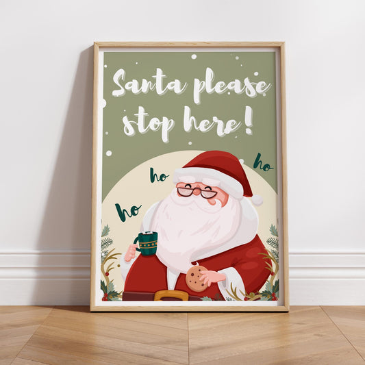 Santa Stop Here Poster - 01: Festive Christmas Print, Xmas Decoration for Kids, Santa Claus Holiday Wall Art, Christmas Home Decor