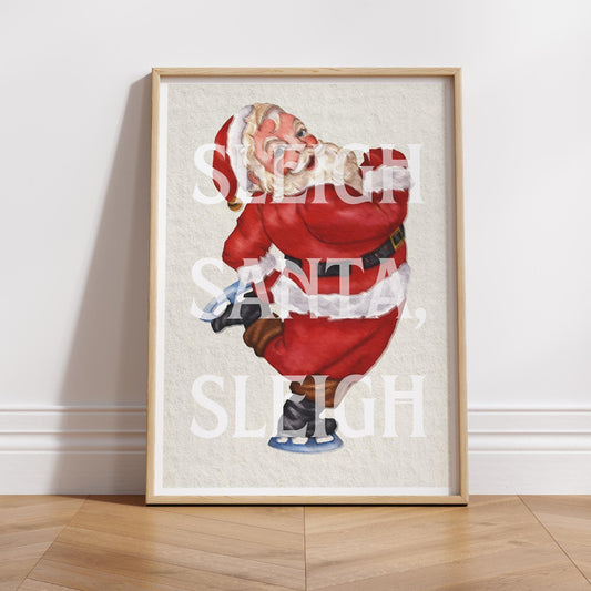 Sleigh Santa Poster - 02: Funny Christmas Wall Art, Vintage Santa, Camp Christmas Print, Slay Santa Claus Wall Art Home Decor, Retro Xmas