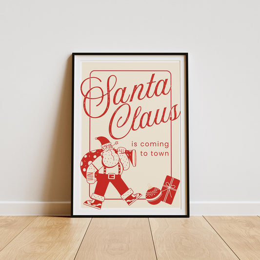Santa Claus is Coming to Town Poster - 01: Festive Christmas Wall Art, Christmas Home Decor, Living Room Wall Art, Festive Home Prints