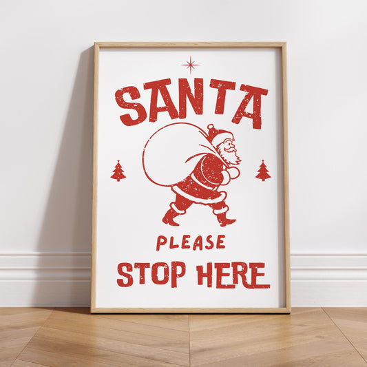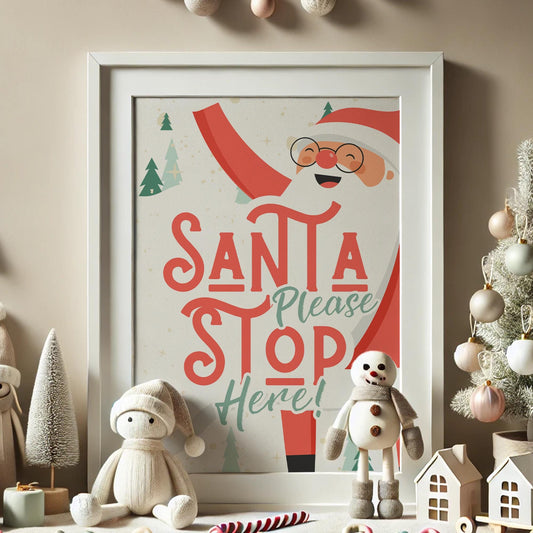 Santa Stop Here Poster - 04: Fun Festive Christmas Print, Xmas Decoration for Kids, Santa Claus Holiday Wall Art, Christmas Home Decor