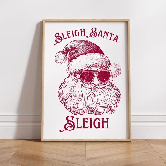 Sleigh Santa Poster - 01: Cool Vintage Christmas Wall Art, Santa with Sunglasses, Camp Christmas Print, Slay Santa Claus Wall Art Home Decor