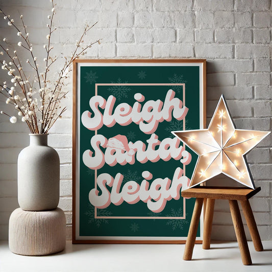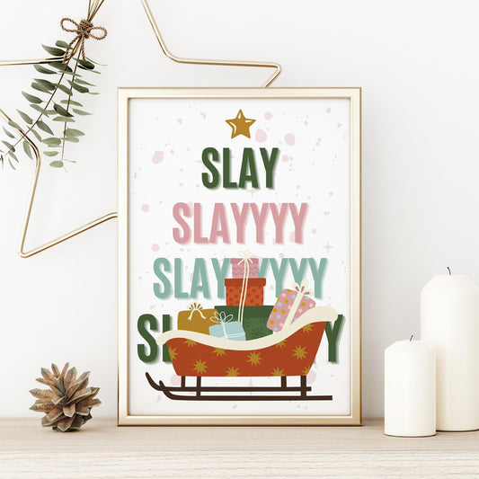 Slay Sleigh Christmas Poster: Sassy Camp Xmas Print, Funny Festive Decor, Quirky Holiday Wall Art, Funny Pun Quote Christmas Home Decor