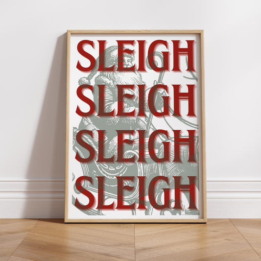 Sleigh Santa Poster - 03: Modern Christmas Wall Art, Typography Poster, Camp Christmas Print, Slay Santa Claus Wall Art Home Decor