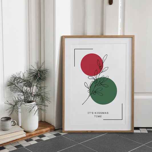 It's Kissmas Time - 01: Christmas Poster, Mistletoe Holiday Wall Art, Christmas Home Decor, Living Room Wall Art, Festive Home Prints