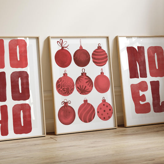 Christmas Wall Art Red Christmas Bauble Print Festive Xmas Ornament Poster Glossy Christmas Decoration Print | Seasonal Home Decor