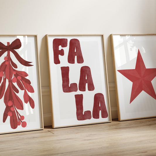 Red Christmas Print Fa La La Poster Modern Xmas Typography Wall Art Minimal Festive Quote Decoration | Seasonal Home Decor