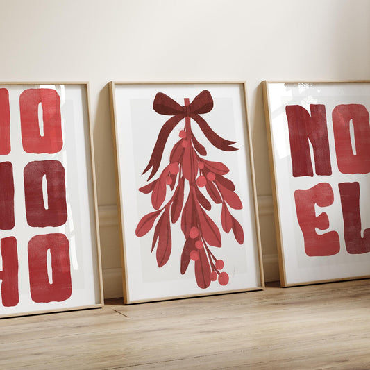 Christmas Typography Wall Art Red Christmas Noel Print Minimal Modern Holiday Poster Festive Decoration | Seasonal Home Decor