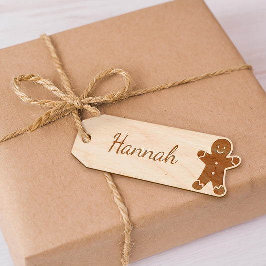 Personalised Wooden Christmas Tag Gingerbread: Custom Name Gift Tag for Stockings, Presents, Hampers & Tree Decorations Reusable Tag