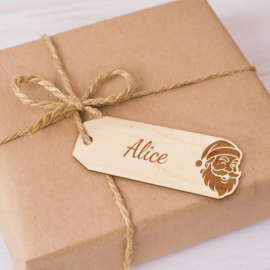 Personalised Christmas Tag Santa: Custom Name Gift Tag , Wooden Label for Stockings, Presents, Hampers & Tree Decorations Reusable Tag