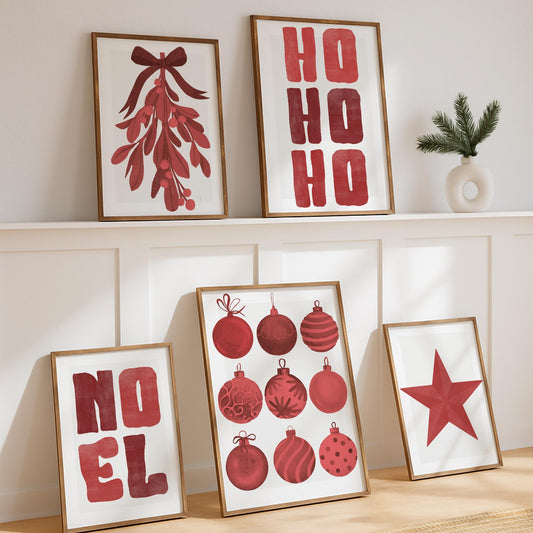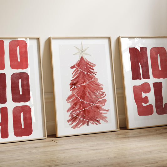 Christmas Wall Art Prints Set Red Christmas Decor Posters Winter Gallery Wall Art Watercolour Xmas Decoration | Seasonal Home Decor