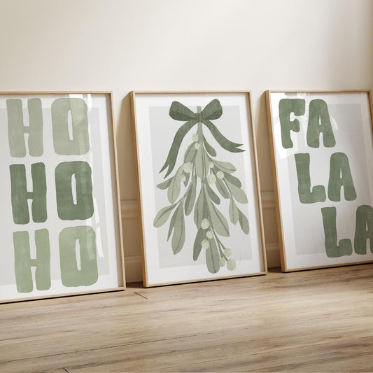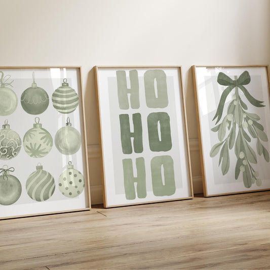 Green Christmas Print Ho Ho Ho Poster Modern Xmas Typography Wall Art Minimal Festive Quote Decoration | Seasonal Home Decor