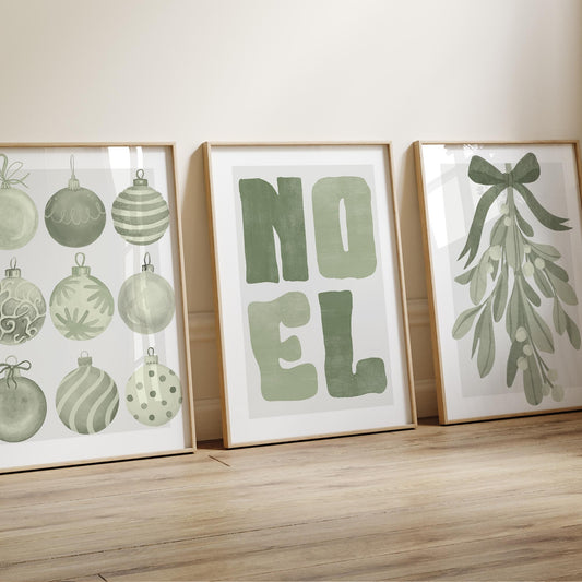 Christmas Typography Wall Art Green Christmas Noel Print Minimal Modern Holiday Poster Festive Decoration | Seasonal Home Decor