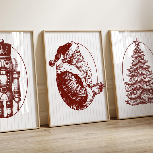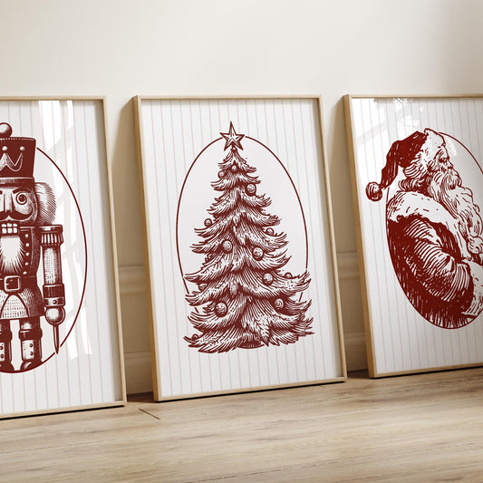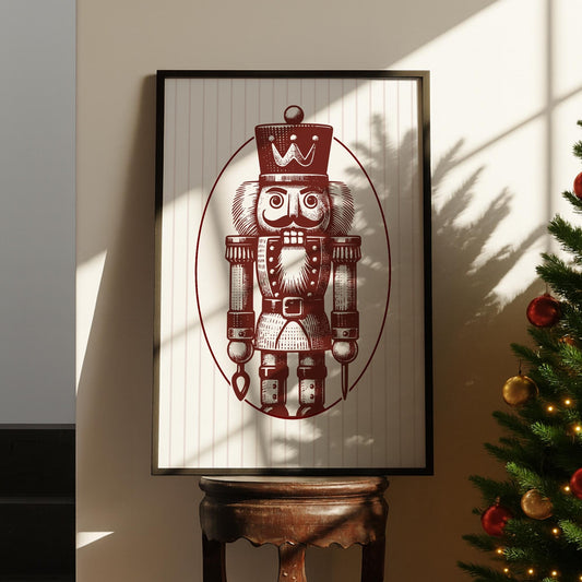 Christmas Nutcracker Print Red Sketch Xmas Wall Art Festive Poster Vintage Traditional Christmas Illustration Seasonal Home Decor