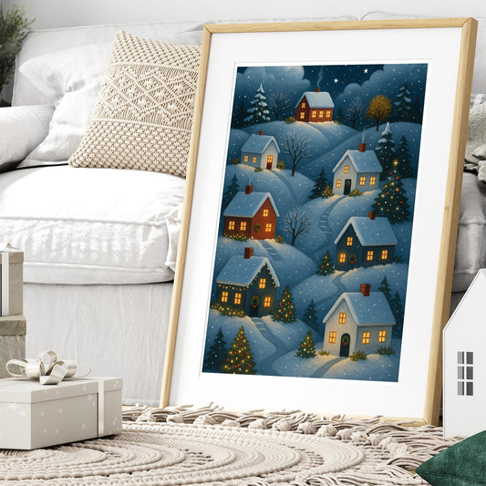 Christmas Village Wall Art 03: Night Scene Print Cosy Winter Houses Artwork Christmas Illustration Poster Seasonal Home Decor