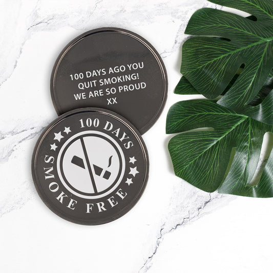 Smoke Free Milestone Coin Personalised Quit Smoking Token 02 | Custom Engraved Recovery Gift | Sleek Design Pocket Keepsake (14 Colours)