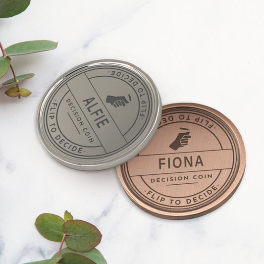 Personalised Decision Making Coin: Coin with Custom Names, Flip to Decide, Unusual Gift, For Couples, Fate Coin Flip, EDC Chance Coin
