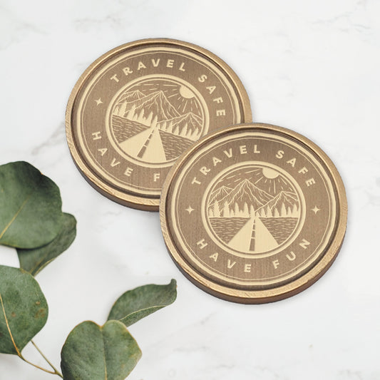 Travel Safe Coin - Mountains Design: Engraved Metal Safe Travels Good Luck Coin, EDC Travel Token, Unique Travel Gift, Globe-trotter Gift