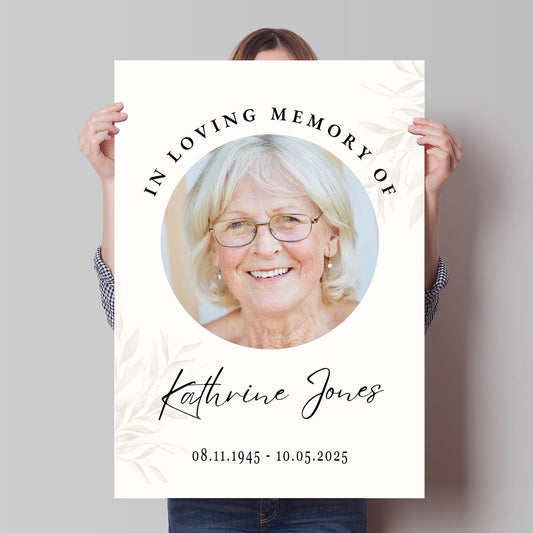 Personalised Funeral Photo Sign 04: In Loving Memory Photo Poster Soft Minimal Memorial Print for Wake or Celebration of Life A3 & A2