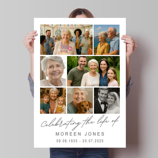 Personalised Funeral Sign 05: Custom Photo Print for Wake Celebration of Life Collage Poster Custom Memorial Picture Print A3 & A2