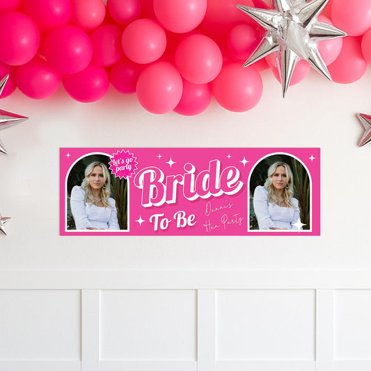 Personalised Hen Party Decor | Bride To Be | Custom Name & Photo Banner | Hot Pink Girly Hen Do Decor | Bridal Shower Party Decorations