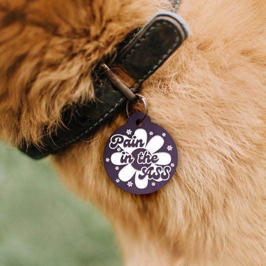 Pain In The Ass- Flower Personalised Dog ID Collar Tag: Custom Pet Safety Accessories, Cheeky Unique Gift For Dog, Hilariously Unique Pet ID