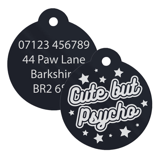 Cute But Psycho - Stars Dog Tag: Personalised Dog ID Collar Tag, Funny Custom Pet Safety Accessories, New Pet Essentials, Dog Gift