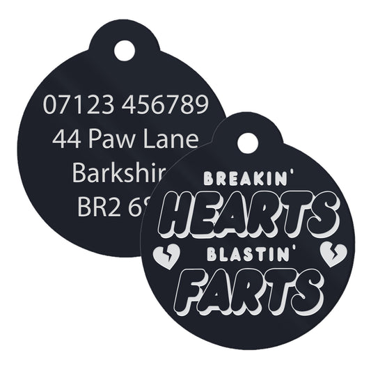 Hearts & Farts - Retro Dog Tag: Personalised Dog ID Collar Tag, Funny Custom Pet Safety Accessories, New Pet Essentials, Gift For Dog