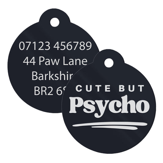 Cute But Psycho - Classic Dog Tag: Personalised Dog ID Collar Tag, Funny Custom Pet Safety Accessories, New Pet Essentials, Dog Gift