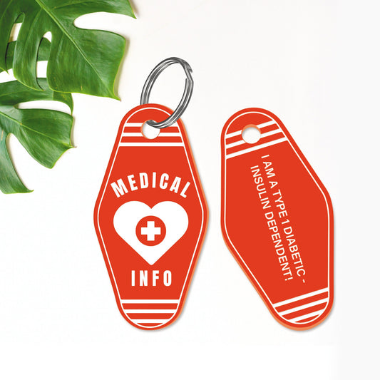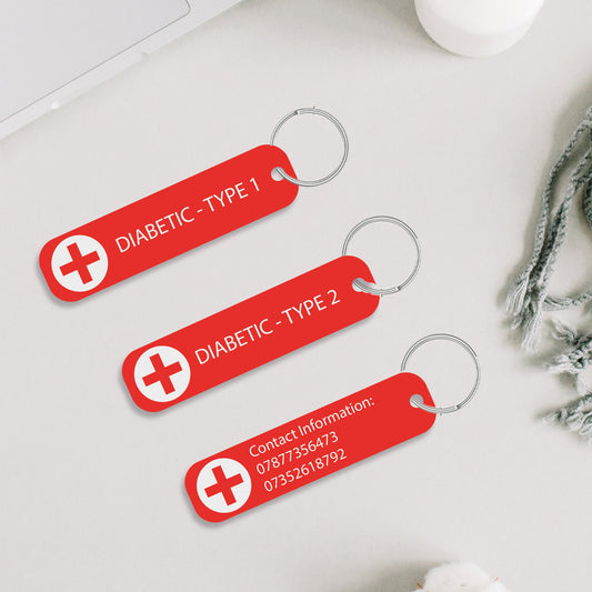 Diabetic Medical Condition Alert Tag Personalised Emergency Contact Keyring Type 1 and Type 2 Diabetes