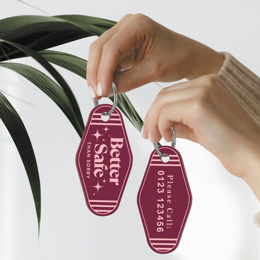 Better Safe - Retro Keyring: Custom Emergency Contact Keychain, UNI Student Essential, Personalised safety Accessory, Practical gift idea