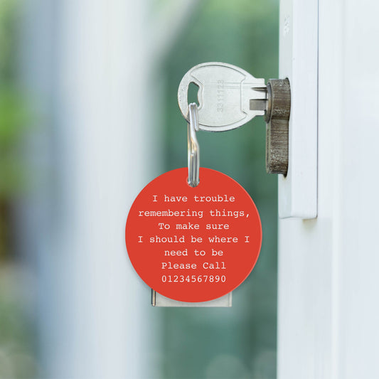 Dementia Round Medical Keyring Tag, Emergency Number, Name On front, Subtle Dementia Keyring, If Lost Call Keyring
