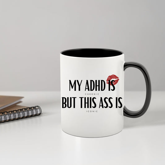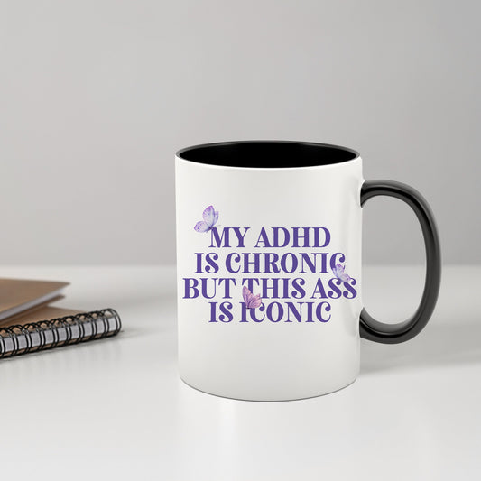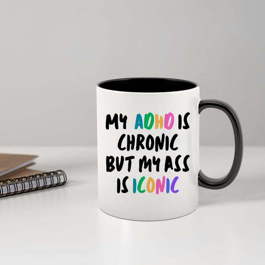 My ADHD Is Chronic But My Ass Is Iconic Mug, Multi Colour Design, ADHD Mug, Humour Gifts, Fun Gifts, Ceramic Mug, Perfect Funny Joke Gift