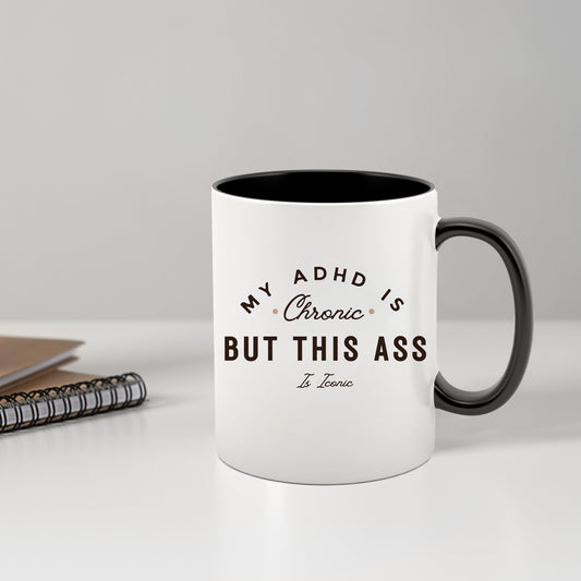 My ADHD Is Chronic But This Ass Is Iconic Mug, Text Design, ADHD Mug, Humour Gifts, Fun Gifts, Ceramic Mug, Perfect Funny Joke Gift