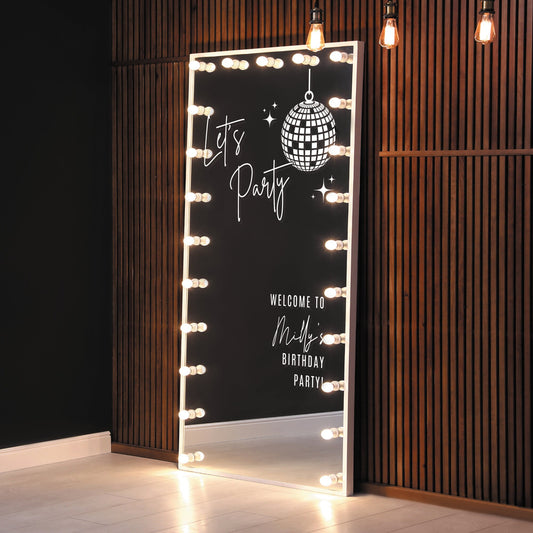 Let's Party - Disco Ball Birthday Mirror Decal: Personalised Mirror Sticker, Birthday Party Decor, Retro 70's Vibes, Disco Era