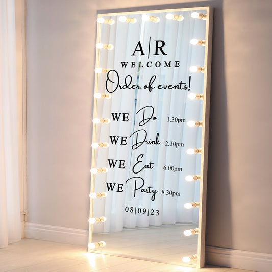 Order Of Events- Personalised Initials, Date & Times - Welcome Wedding Mirror/Sign Sticker, Modern, Minimal, Easy To Apply Decal, DIY Decor