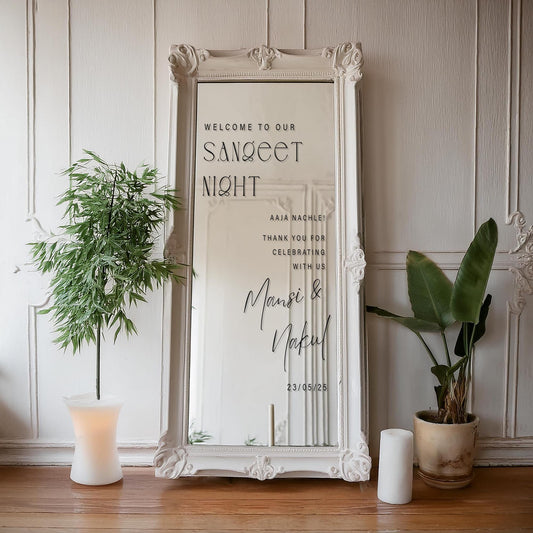 Personalised Sangeet Welcome Mirror Sticker: Custom Wedding Vinyl Decal | Indian Wedding Decor | Let's Dance the Night Away