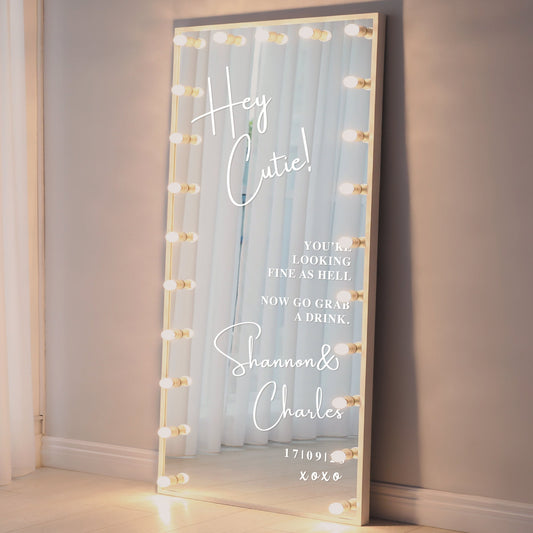 Hey Cutie - Wedding Mirror Sticker - Personalised Names, Selfie Mirror, Guest Photos/Pictures, Vinyl Sticker for DIY Wedding Sign